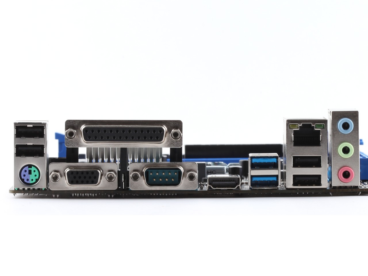 LPT+COM+PCI接口,VGA+HDMI接口,數(shù)模分割線,音頻電容,中空散熱片
