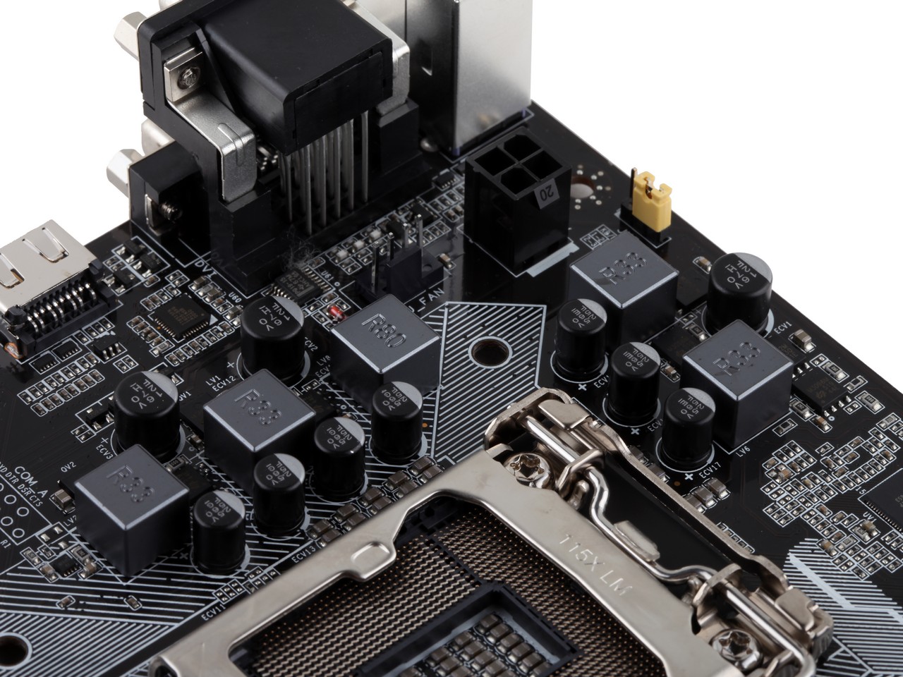 全視頻輸出,數(shù)模分割線,信仰燈,音頻電容,中空散熱片