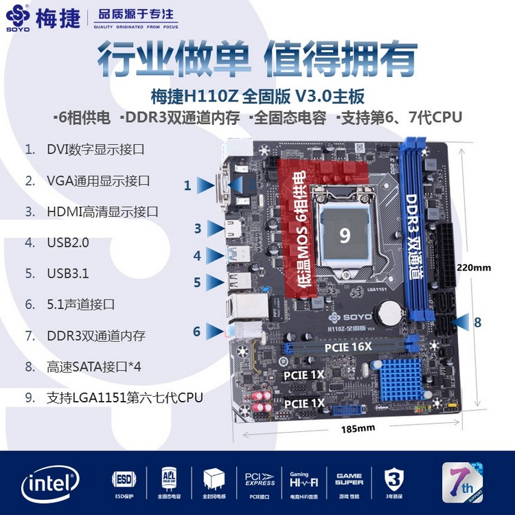 扎實供電,DDR3內(nèi)存,音頻分割線,音頻電容,SATA3.0,USB3.0