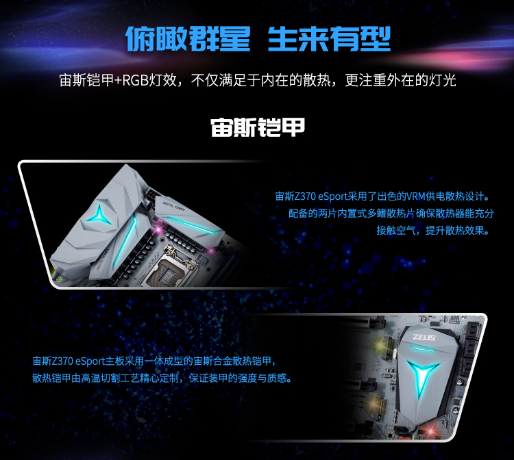 雷神盾防護系統(tǒng)、15相數(shù)字供電優(yōu)化、Magical-RGB 1600萬色燈效,演繹電競美學(xué)、服務(wù)器極速網(wǎng)卡、HiFi旗艦音頻優(yōu)化系統(tǒng)、未來設(shè)計感宙斯散熱鎧甲