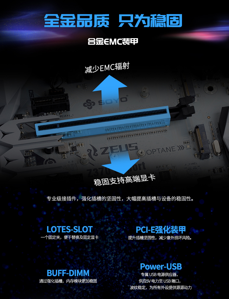 3條PCI-Ex16顯卡插槽,支持高性能雙卡(X8+X8等)
