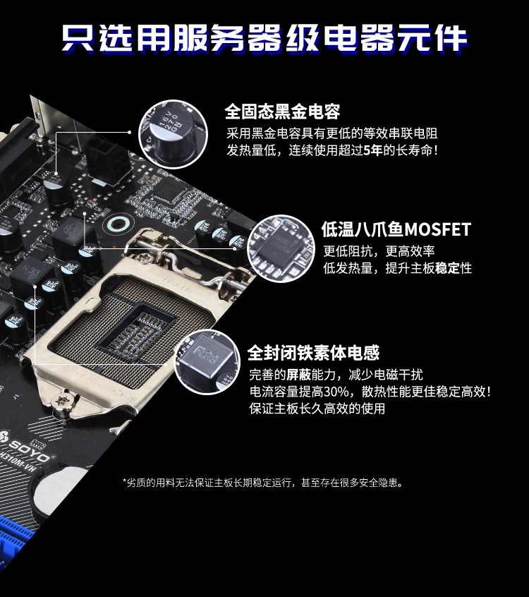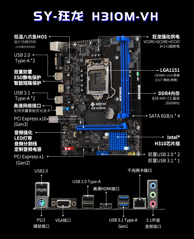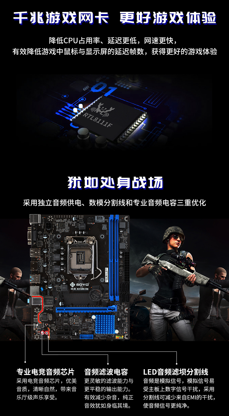 - 扎實供電,DDR4內(nèi)存,音頻分割線,音頻電容,SATA3.0,USB3.1