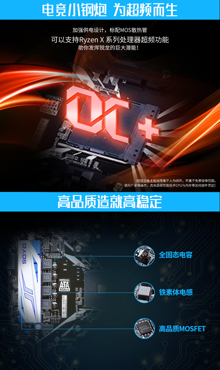 - 支持超頻,全規(guī)格M.2高速接口,顯卡插槽,2條DDR4內存槽,六相供電,整版ESD防護,中空散熱片
