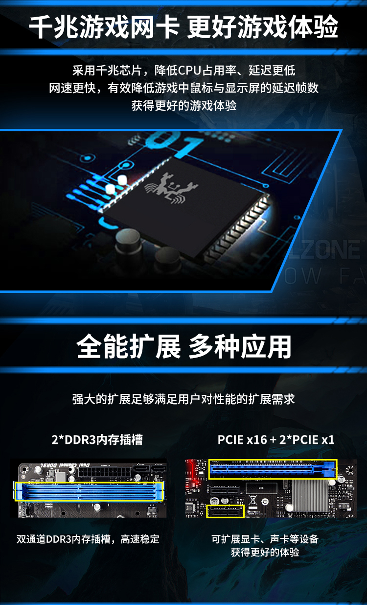 扎實(shí)供電,DDR3內(nèi)存,SATA3.0,USB3.1