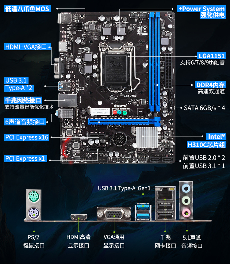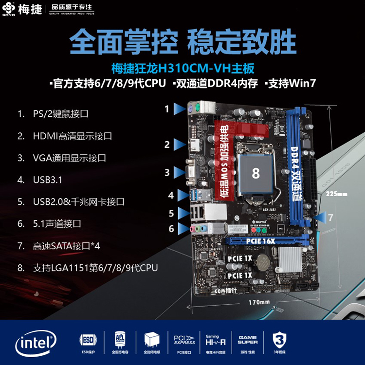 扎實(shí)供電,DDR4內(nèi)存,SATA3.0,USB3.1
