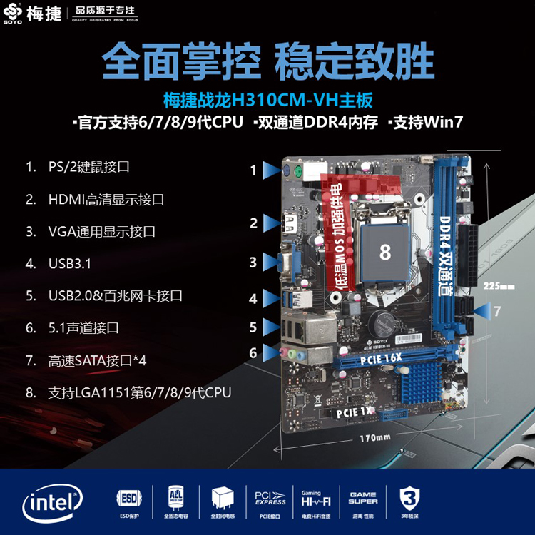 扎實(shí)供電,DDR4內(nèi)存,SATA3.0,USB3.1