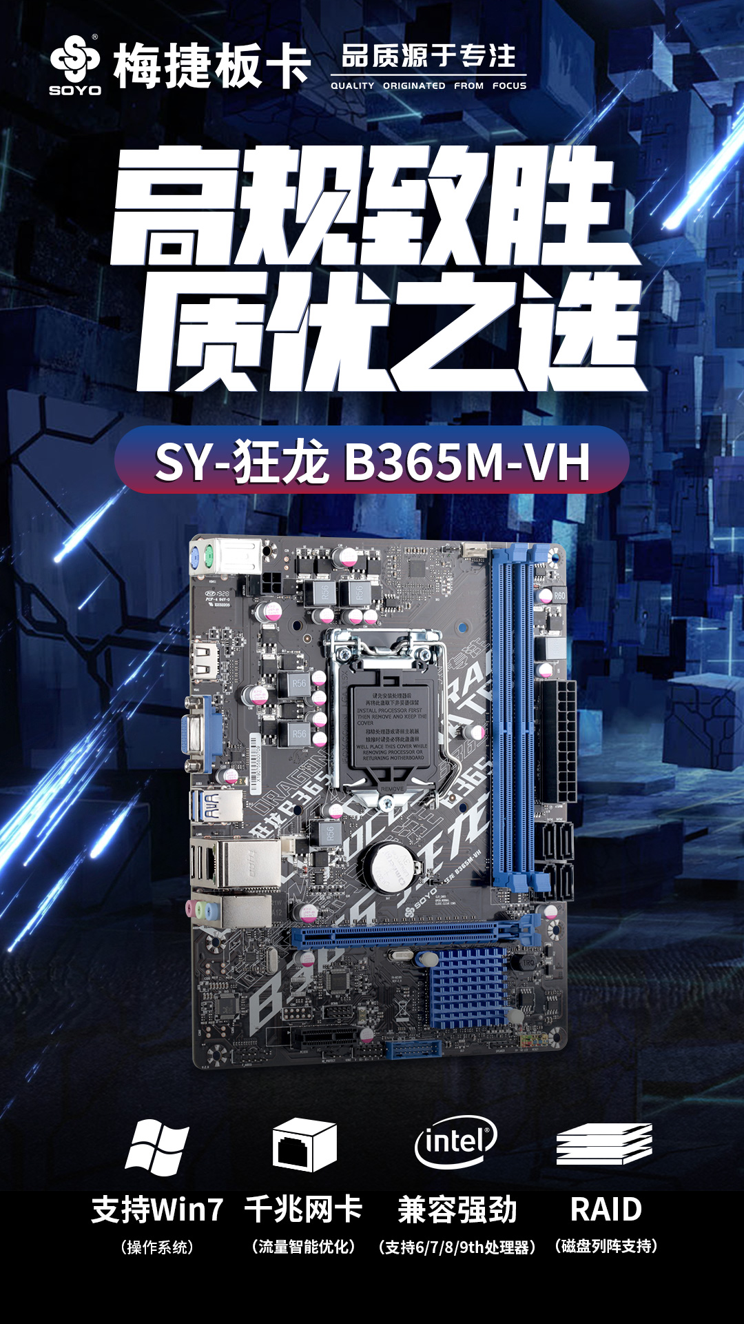 作為主板界老牌廠商,梅捷對(duì)于大部分玩家可謂不陌生,梅捷這次推出的狂龍B365M-VH主板,外觀上加入了比較潮流的絲印元素,多個(gè)碩大的文字絲印組合,仿佛紋有一身圖騰的部落酋長(zhǎng)。