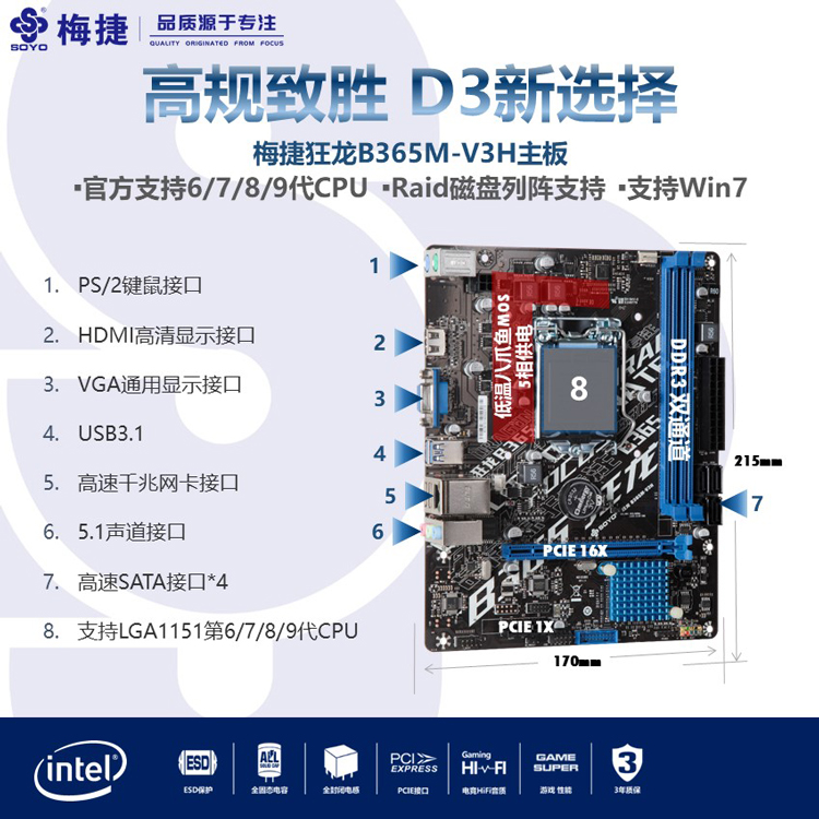 扎實(shí)供電,DDR3內(nèi)存,SATA3.0,USB3.1