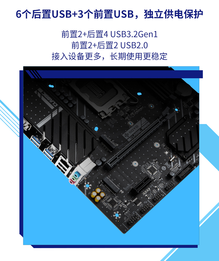 - IO處4個USB3.2 Gen1接口,2個USB2.0接口;前面板USB3.2 Gen1接口1個,前面板USB2.0接口2個